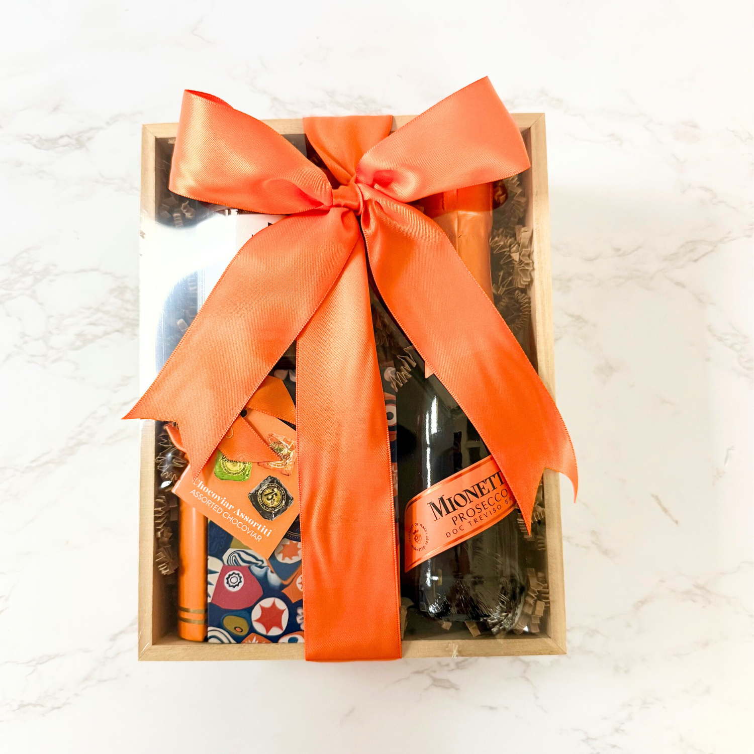 Celebrate with Mini Mionetto gift set! This playful package pairs a crisp mini Mionetto Prosecco with luxurious Venchi Italian chocolates and sweet candied California pecans—perfect for toasting with coworkers, sharing with family, or recognizing an accomplishment. Cheers to bubbly moments and tasty treats that bring joy to everyone on your list!