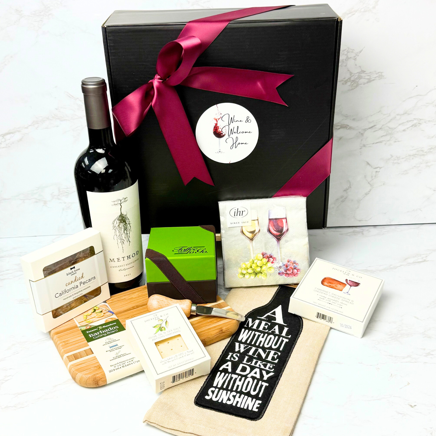 Wine & Welcome Home is the perfect real estate closing gift—carefully curated to help clients unwind, indulge, and feel right at home. With a mix of savory and sweet treats, stylish kitchen touches, and, of course, a bold Cabernet Sauvignon, it’s a toast-worthy way to say, “Welcome home!”